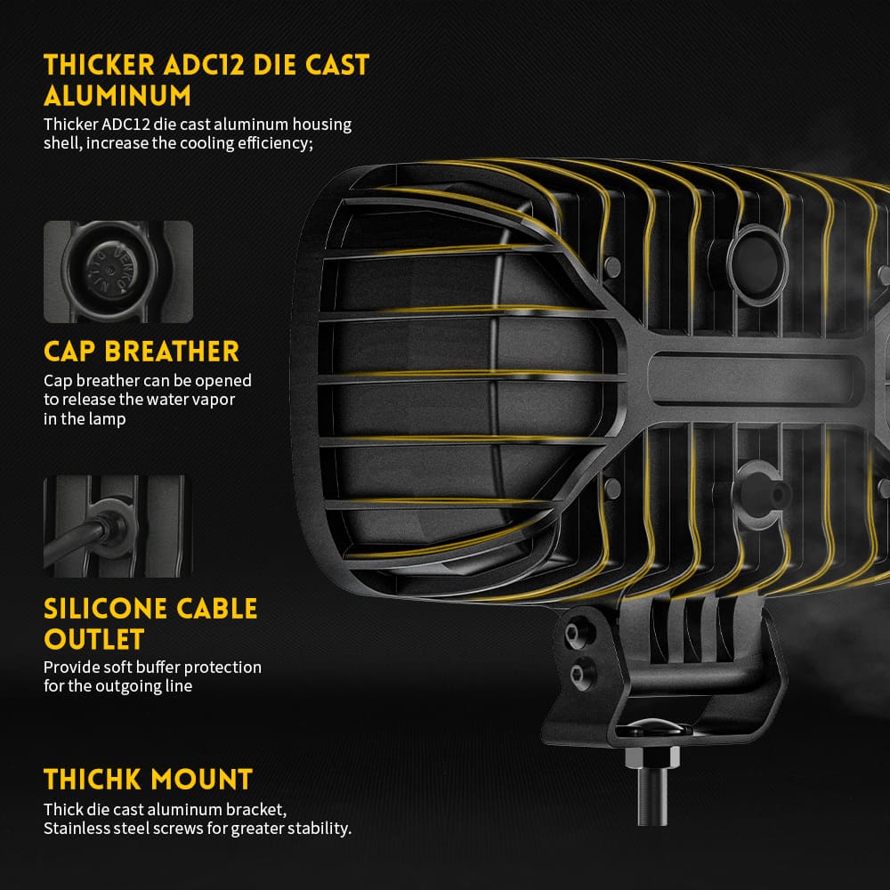 Built for every season and every terrain. With IP68 certification, this light is fully protected against water immersion, snowstorms, dust, and mud. Whether you’re crossing rivers or tearing through sand dunes, it’s built to endure.